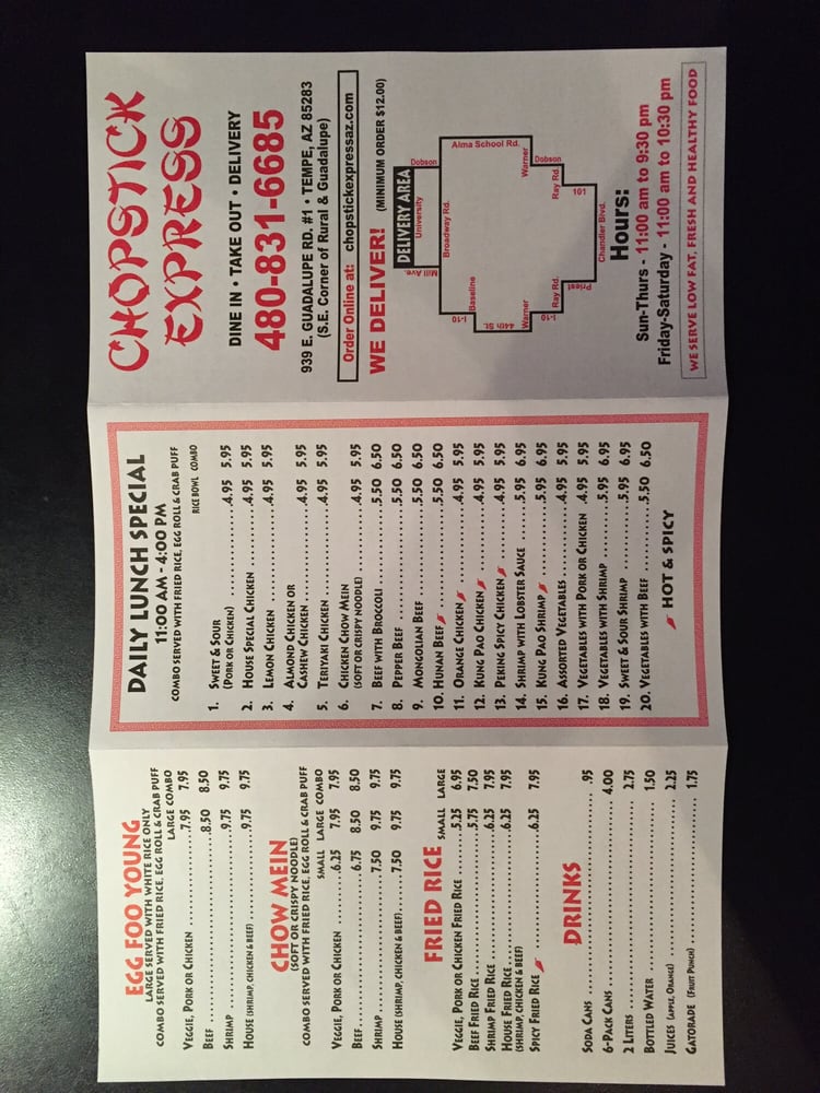 Introducing Chopstick Express: a delightful haven for Chinese cuisine enthusiasts located at 939 E Guadalupe Rd, Tempe, AZ. This casual dining spot is renowned for its swift service and scrumptious dishes, catering to both takeout and dine-in experiences. With a menu rich in vegan and vegetarian options, Chopstick Express meets diverse dietary needs, ensuring everyone finds something to savor.